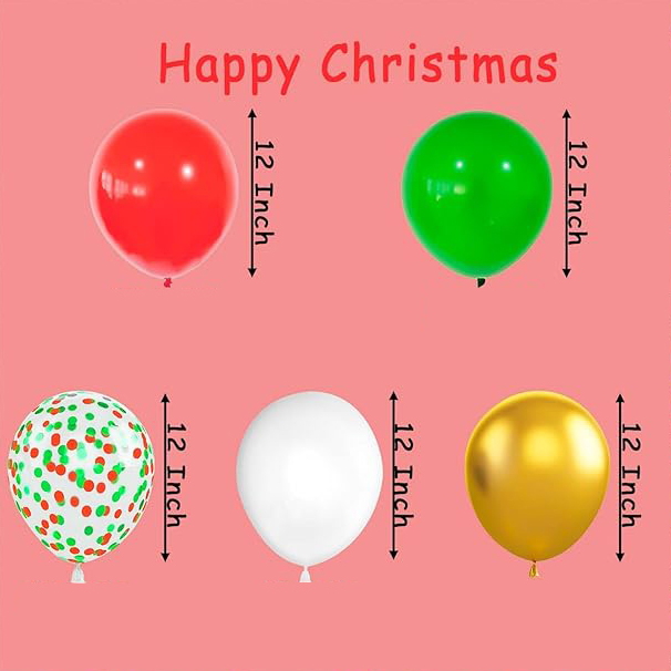 Priložen je 12 -palčni mešani barvni božični balonski priročnik, ki je razstavljen:
