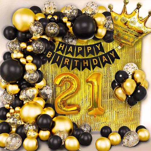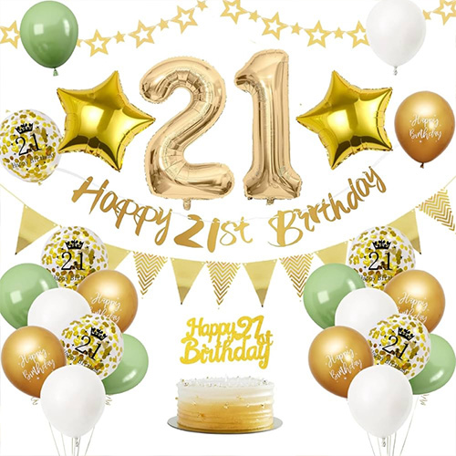 21. set balonov: ta 21. set balonov je sestavljen iz balonov iz lateksa, balonov iz folije, rojstnodnevnih zastavic in drugih dodatkov. Enostavno ga je sestaviti in lahko naredi vašo zabavo za 21. rojstni dan bolj slovesno. Tako kakovostna in osupljiva postavitev vam bo pomagala polepšati noč vašega 21. rojstnega dne in narediti ta dragocen trenutek, ki ga vaša hčerka, vi in vsa družina ne boste nikoli pozabili.
