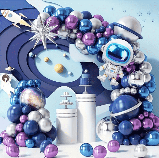 Set balonskih vencev iz folije astronavt je privlačno orožje za obsežne dejavnosti, primerno za steno v ozadju zabave, postavitev vhoda v nakupovalno središče. Z balonsko verigo kot osnovo so balon s tiskanjem astronavtov, balon iz raketne folije, barvni balon s planetom in mat balon iz lateksa premešani in pritrjeni. Obleko za venec lahko obesite neposredno na steno ali okvir vrat. Barvni sistem globokega zvezdnega neba se ujema s svetlim kovinskim sijajem, ki takoj napolni vzdušje prostora in postane vizualni fokus mesta dejavnosti.