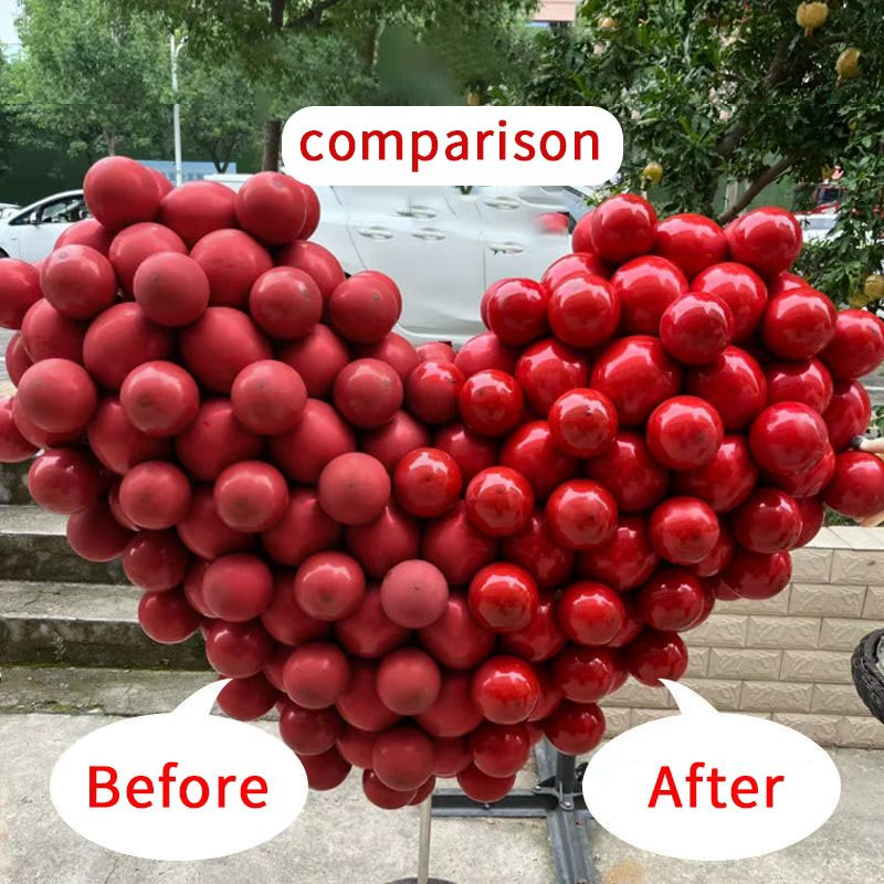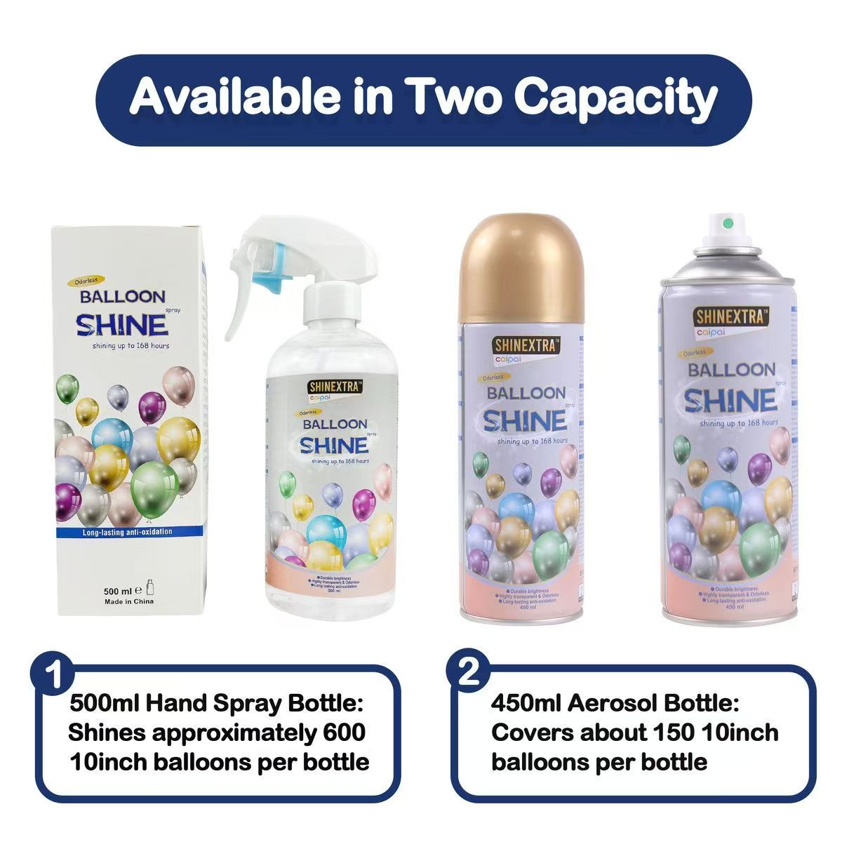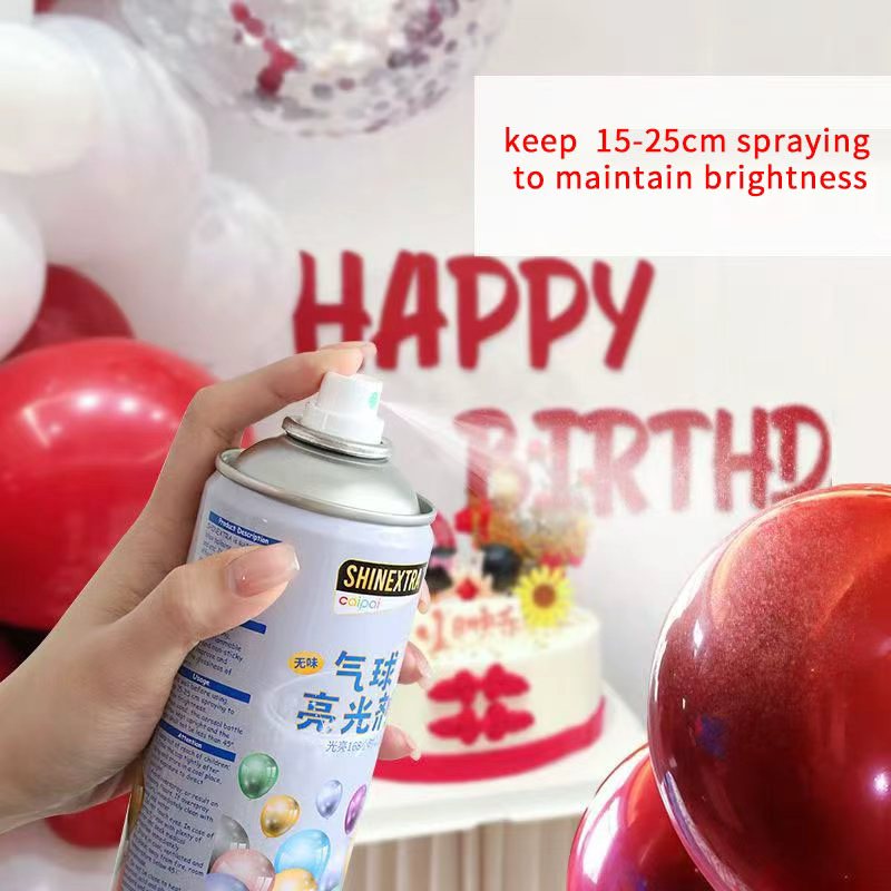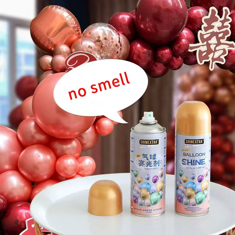 Balloon Shine Spray uporablja inovativno formulo na oljni osnovi. Njegova mikromolekularna struktura hitro prodre in se drži na površini lateksa, kar tvori brezhiben zaščitni film z visokim sijajem. Obdelani baloni lahko dosežejo več kot 300%sijaja, kar ima za posledico živahne, bogate barve.