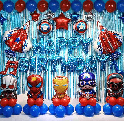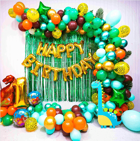 Balonski lok za rojstnodnevno zabavo se lahko ujema s tematsko papirnato pasico, resicami, balonskimi stebri iz folije, prtom, ozadjem itd.