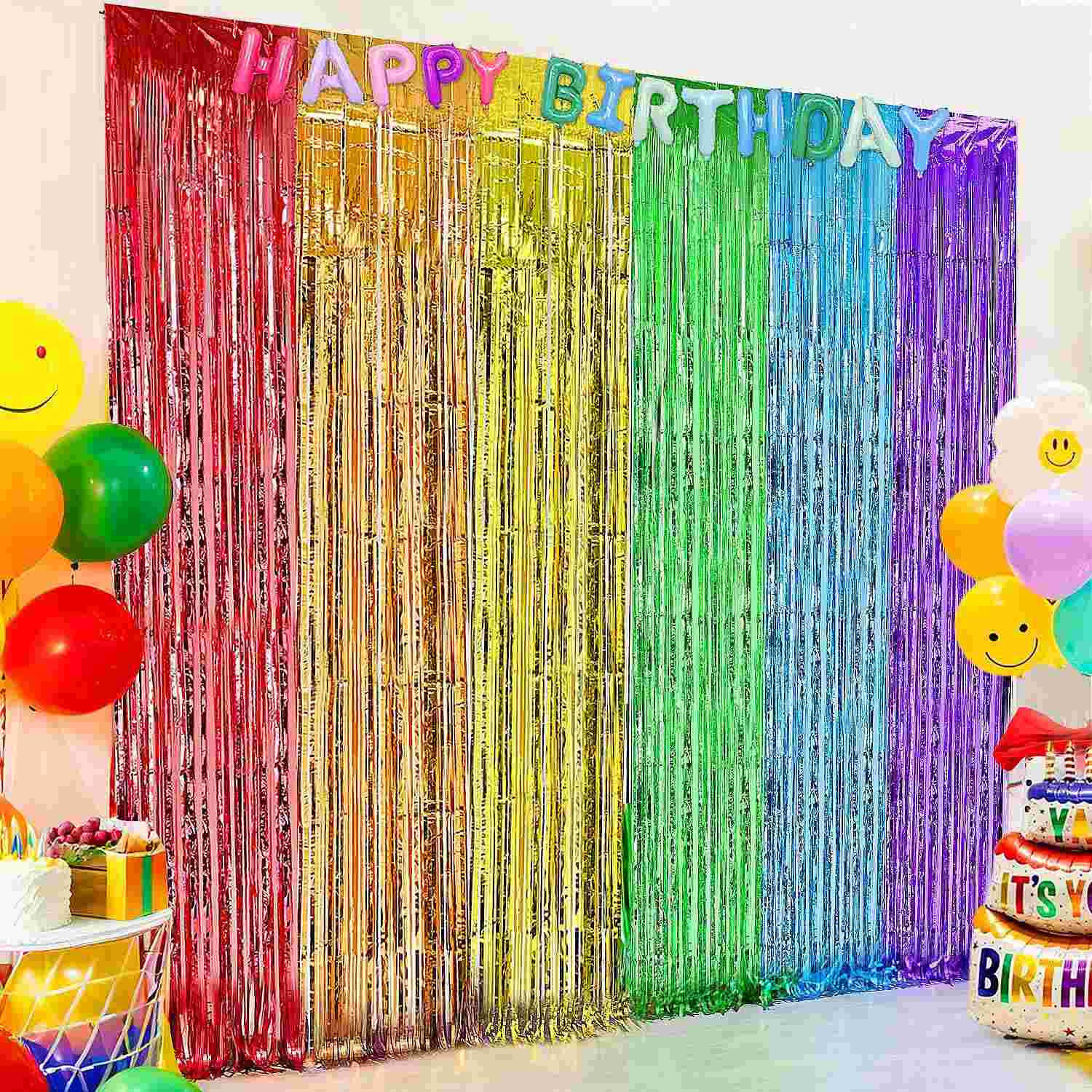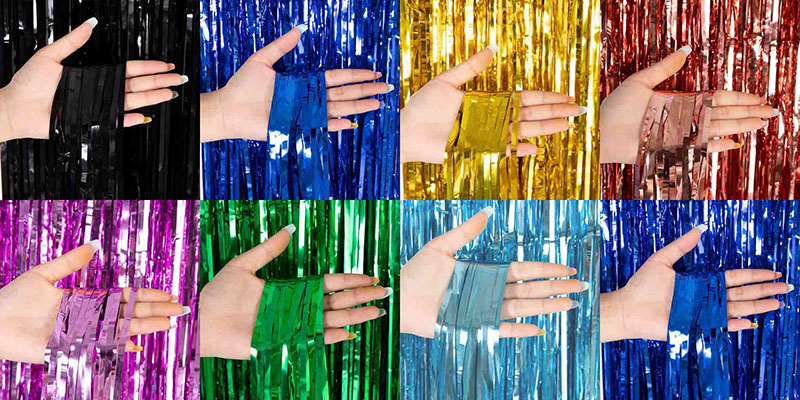 Modni okraski za ozadje za zavese iz folije za rojstni dan so narejeni s tkanjem kovinskih žic z visoko gostoto. Zelo dobro visijo z močno draperijo. Rahlo jih potresite in začele bodo teči kot slap. Izgleda tako lepo. Ima veliko različnih barv, med katerimi lahko izbirate. Izberete lahko šampanjec zlato, rožnato zlato, srebro in drugo. Če želite, lahko dobite tudi sloge barvnih blokov. Ustreza potrebam barvnega ujemanja različnih prizorov.