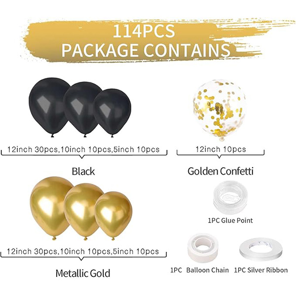 ŠIROKA UPORABA: Črni in zlati kompleti Balloon Arch so primerni za številne priložnosti. Z njimi lahko okrasite rojstne dneve, novoletne dneve, razne festivale, dan otroka ipd.