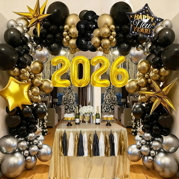 1. Uporabljivi scenariji za črno -zlati balonski komplet Garland