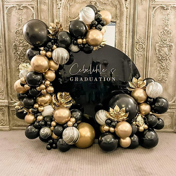 3. Ne samo podpiramo velikost balona iz lateksa za komplet loka iz črnega zlata po meri, ampak tudi posebej podpiramo prilagajanje velikosti balonov glede na potrebe strank. Izbirate lahko med 5 palčnimi, 10 palčnimi, 12 palčnimi, 18 palčnimi in 36-palčnimi baloni iz lateksa, da zagotovite, da lahko v različnih priložnostih in dejavnostih zadovoljijo vaše raznolike potrebe. Poleg tega, da bi bolje spoznali različne ZDAE Zahteve o dekoraterjih za zabave, tovarna Balloon Niun® ponuja tudi vrsto prilagojenih storitev, vključno zG, vendar ni omejena na desko za ozadje, dežno zaveso, krpo v ozadju in zastavo rojstnega dne ter druge dekorativne elemente. Če imate kakšne edinstvene ali posebne ideje, vas iskreno vabimo, da jih kadar koli delite z nami. Naša ekipa se bo potrudila, da vam bo pomagala spremeniti te ideje in ideje v resničnost.