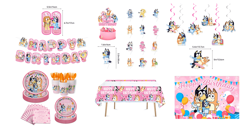 Bluey baloni so na voljo v različnih materialih, kot sta lateks in folija.Baloni iz lateksaso mehke in svetlih barv. 12-palčni komplet balonov Bluey dog iz lateksa,natisnjen z motivi Bluey in drugimi znaki, je na voljo v modri, roza, oranžni in drugih barvah.Folija baloniso v različnih oblikah, vključno s prekrižanimi Blueyji, mahajočimi Blueyji in sedečimi položaji za bingo. Ti izdelki so trpežni in jih ni enostavno zlomiti. Vključuje ocenjevalce modrih balonovpapirnati transparenti, papirnati pokrovi in papirnati namizni pribor. Ponujamo prilagojene komplete balonov Bluey, ki nudijo več možnosti za okrasitev zabave s pomočjo personaliziranih kombinacij balonov in dodatkov za balone.