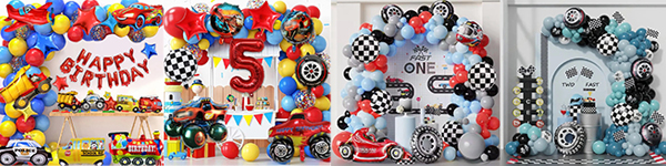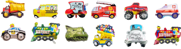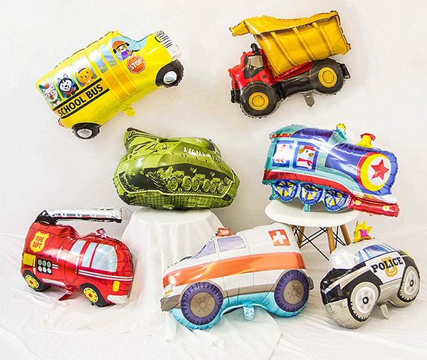 Če želite uporabiti na majhnih zabavah ali kot dekoracijo. Izberete lahko majhne komplete balonov iz folije za vozila z risankami, ki jih prilagodimo za vas. Ta komplet običajno vključuje velik balon iz folije v obliki avtomobila, 18-palčni okrogel balon iz folije in 18-palčni balon iz folije v obliki zvezde. Ti baloni izgledajo zelo lepo in lahko poudarijo lepoto fotografij. Okrasitev na glavni steni omogoča gostom, da posnamejo idealne fotografije na družbenih omrežjih, saj kot vemo, brez fotografije s popolnim ozadjem zabava ni popolna.