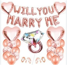 Slog obleke je v glavnem narejen iz balonov iz folije z diamantnimi zaročnimi prstani, ki se ujemajo z baloni iz folije v obliki zvezdic in tematskimi okroglimi baloni, celotno ujemanje pa je preprosto in atmosferično. Hkrati podpira prilagojeno prilagajanje in lahko prilagodi vrsto in količino balonov glede na potrebe, kot je dodajanje balonov iz folije s črkami, kot sta I DO in MARRY ME, da še okrepi vzdušje priznanja in snubljenja.