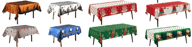 Na primer, ujemanje rdeče in zelene barve božične teme, namizni prt iz folije z vzorcem božičnega drevesa in snežinke, črno in oranžno barvno ujemanje teme noč čarovnic z vzorcem buč in netopirjev ter rdeče in zlato barvno ujemanje teme pomladnega festivala s srečnimi liki in vzorcem luči se lahko uporabljajo za praznično okrasitev namizja domov, nakupovalnih centrov, barov, restavracij in drugih krajev.