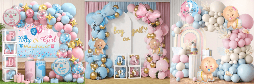 Komplet, ki razkriva spol, združuje prednosti spola, ki razkriva balone iz lateksa in folije, z bogatejšimi okraski, prav tako pa razdeljeni na osnovne in nadgrajene modele, ki ustrezajo preprostim slovesnostim in izjemnim obredom, od malih družin, ki se zbirajo na velikih potrebah, da se srečajo z vsemi potrebami.