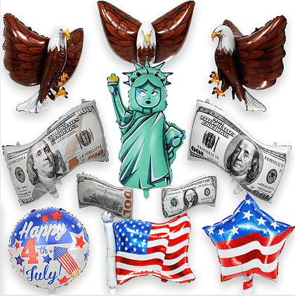 Lahko jih večkrat napihnemo, ob upoštevanju izvedljivosti in varstva okolja. V procesu dekoracije smo dodali različne posebne elemente praznične dekoracije. Baloni iz lateksa so potiskani z izvrstnimi zvezdnimi črtami, vzorci peterokrake zvezde in angleškim napisom "Happy 4th of July". Baloni iz folije se uporabljajo za ustvarjanje klasičnih oblik za dan neodvisnosti, kot so tridimenzionalne zvezdne črte, plešasti orel in številka "4". Nekaterim balonom so dodani tudi bliskoviti elementi, kot so zlati prah in bleščice, da je okrasni učinek bolj privlačen.