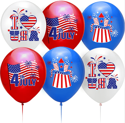 Naši baloni ob dnevu neodvisnosti so izdelani iz zgoščenega lateksa za živila in visokokakovostne aluminijaste folije.