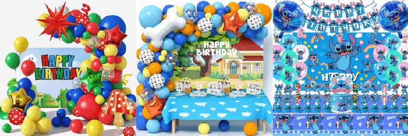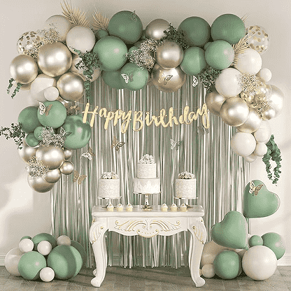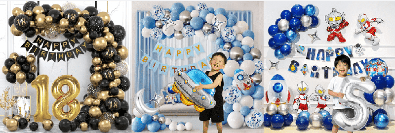 Osnovni stil je balon iz lateksa Happy Birthday v enaki ali komplementarni barvi, zHappy Birthday pismo folija baloniozbaloni iz folije s številkami. Klasični slogi imajo balon Macaroon v prahu v gelu, roza balon iz folije Happy Birthday, balon iz črne folije iz lateksa, balon iz folije z zlato številko. Balone iz lateksa lahko nanizate v verigo balonov in jih obesite na steno ali strop, z baloni iz folije kot vizualnim središčem in majhnim okrasjem v traku za hitro ustvarjanje preprostega in teksturiranega vzdušja zabave.