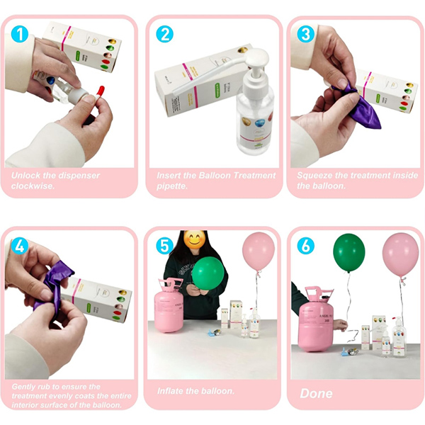 3. Uporabite nadgrajeno formulo, da zagotovite, da je čas oblikovanja lepila v notranjosti balona učinkovito krajši. Zasnovan je bil posebej za podaljšanje plavajočega časa helijevih balonov v toplem in vlažnem okolju.
