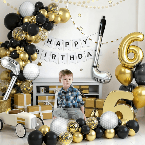 Poleg balonov lahko dodate tudi nekaj dodatkov, da dodate slog, kot je ozadje na temo golfa ali drugi tematski okraski. Z baloni v kompletu lahko ustvarite tudi druge učinke. Na primer luknja v enem kompletu balonov iz folije ali luknja v enem kompletu balonov iz lateksa. Vsi lahko naredijo popoln učinek na vaših zabavah.