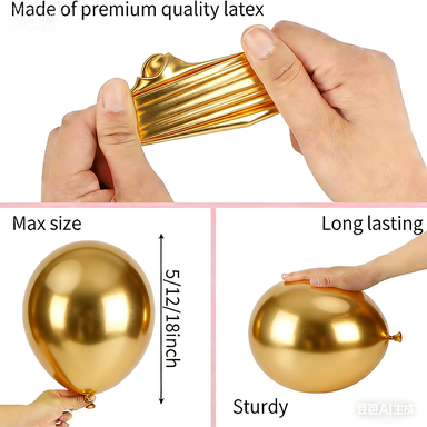 Baloni iz lateksa, ki jih ponujamo za luknjo v enem kompletu balonskih girland, so narejeni iz 100 % naravnega lateksa, ki je bil uvožen iz jugovzhodne Azije. Njihove velikosti so 5 palcev, 10 palcev, 12 palcev in 18 palcev. Če jih razporedite v različne velikosti, lahko ustvarite privlačen učinek večplastnosti.
