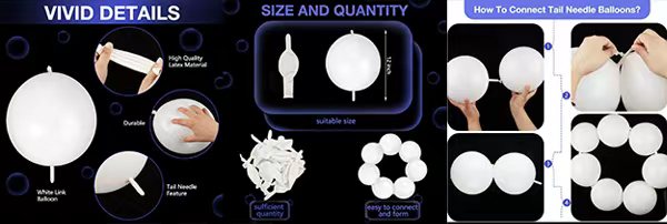 Naši baloni za hitro povezavo izstopajo s svojim edinstvenim dizajnom od konca do konca in odpravljajo potrebo po orodjih. V primerjavi s tradicionalnimi baloni je postopek Advanced Link Balloon Connection preprostejši in hitrejši, kar vam omogoča učinkovitejšo okrasitev svoje zabave ali prizorišča.