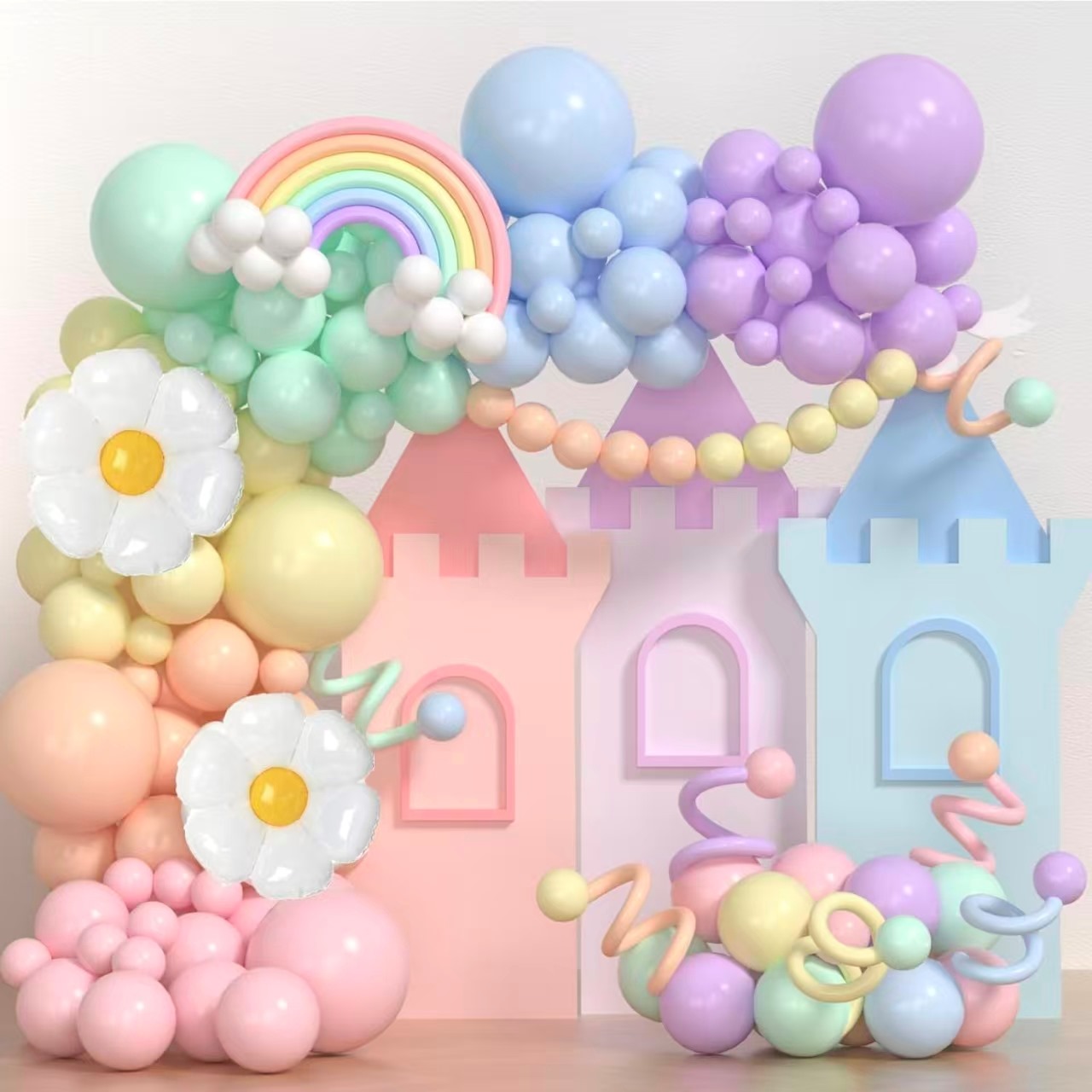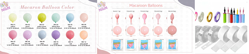Garlandski lok Macaroon Color Baloons je priljubljen zaradi svojih mehkih in sanjskih barv. Celoten set se osredotoča na 12 nežnih barv makaronov. Ima Macaroon Red, Macaroon Blue, Macaroon Purple in druge barve. Vsaka barva prinaša svež in romantičen videz.