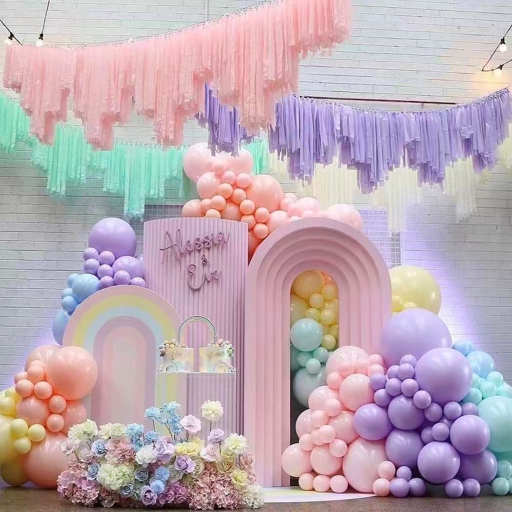 Za zasebne zabave ali velike prireditve lahko makaroon baloni Garland Arch doda plasti in umetniški občutek. Praznovanja naredijo bolj posebna in nepozabna.