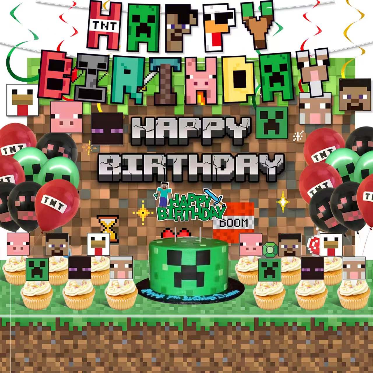 Ozadje Minecrafta je glavni vizualni del zabave. Zasnova sprejme ideje iz klasičnih iger. Prikazuje nebo Pixel, travo, drevesa, zgradbe in Steve. Ti deli se pridružijo, da bi naredili polno blok svetovne scene. Slika ima svetlo barvo. Slika ima bogate plasti. Besede srečen rojstni dan v slogu Pixel izgledajo jasno. Besede ujamejo oko. Na ozadju se na zabavi naenkrat počuti kot igra.