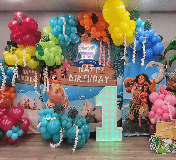 Za razliko od tradicionalne balonske dekoracije z enim lokom je moana balonski lok uvedel drzne inovacije v oblikovanju modelov. Nekateri vrhunski prilagojeni modeli bodo celo dodali majhne balone za modeliranje animiranih likov, kot sta Moana in Maui, da bo celotna dekoracija bolj pripovedna in zanimiva. Obliko moana balonskega loka je mogoče prilagodljivo prilagoditi glede na velikost, obliko in vrsto prizorišča dejavnosti. Ne glede na to, ali gre za mini lok za majhne družinske zabave ali velikanski lok za velike komercialne dejavnosti, ga je mogoče popolnoma prilagoditi.