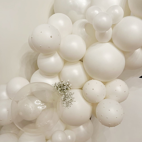 Dvoslojni baloni iz lateksa se prekrivajo in tvorijo balon z lokom girlande prho na mostu, tako kot niz svetlih biserov. Baloni iz lateksa različnih velikosti so združeni skupaj, da postanejo bolj razgibani in postanejo najbolj bleščeč poudarek na celotnem prizorišču dogodka. Poleg tega so dvoslojni baloni bolj robustni in vzdržljivi kot enoslojni baloni. Tudi če na mestu aktivnosti pride do rahlega trčenja ali trenja, ga ni enostavno poškodovati, kar lahko zagotovi, da je celoten balonski lok med aktivnostjo vedno v popolnem stanju.