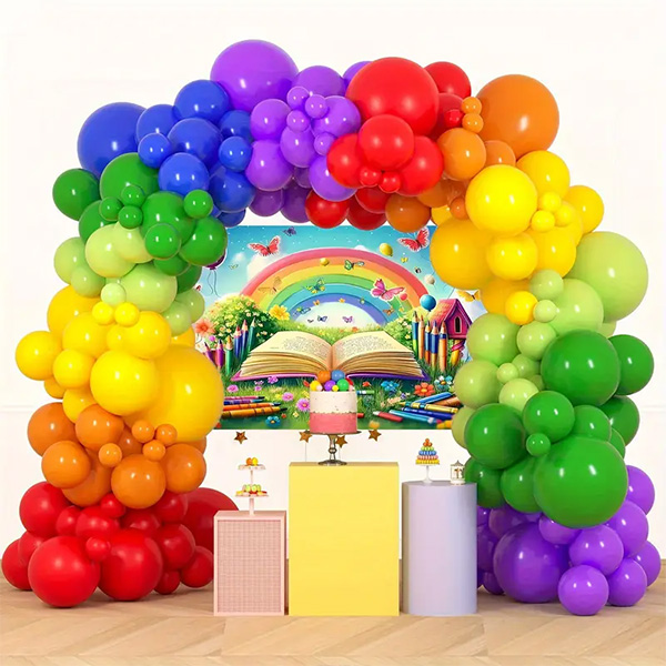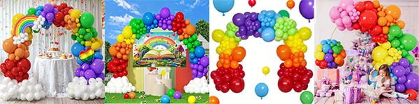 Ta komplet mavričnih balonskih girland je narejen iz pisanih balonov iz lateksa. Zaradi živahnih barv je popoln za okrasitev otroških rojstnodnevnih zabav. Kompleti girland mavričnih balonov po meri so na voljo v različnih stilih. Svoj komplet vencev iz mavričnih balonov po meri lahko prilagodite in ga sestavite v želenem slogu. Ustvarite svojo edinstveno obliko in eksperimentirajte z njo, da bo vaš naslednji dogodek popoln uspeh.