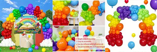 Naši trenutni kompleti mavričnih balonov z mavričnimi baloni, ki jih je enostavno upravljati, so na zahtevo opremljeni s karticami z navodili, ki vam omogočajo preprosto ustvarjanje kakršnega koli okrasja, ne da bi porabili veliko časa za sestavljanje. To vam omogoča, da izkusite zabavo dela DIY, hkrati pa prihranite dragoceni čas. Za učinkovitejšo montažo priporočamo tudi uporabo električne črpalke!