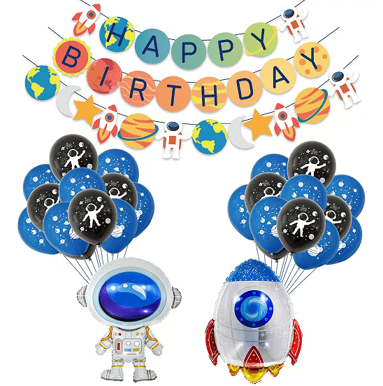 Izbor balonov iz lateksa za vesoljske astronavte iz 100 naravnih surovin iz lateksa, varen in okolju prijazen, brez vonja, z mednarodnim varnostnim certifikatom, primeren za tesen stik z otroki. Balon ima odlično raztegljivost, poln in okrogel po napihovanju, ni ga lahko zlomiti in je zelo trpežen. Barve so večinoma globoko vesoljska modra, zvezdnato nebo črna, Mlečna cesta bela in Mars rdeča, okrašena s silhuetami astronavtov, orbitami planetov, sledi raket in drugimi potiskanimi vzorci. Slog je zelo skladen z vesoljsko temo in ima visoko stopnjo prepoznavnosti. Ločeno lahko okrasi namizje in steno, lahko pa ga tudi kombinirate z baloni iz folije, da obogatite nivo dekoracije. Je idealna izbira dekoracije za otroške rojstnodnevne zabave, šolske poljudnoznanstvene dejavnosti in razstave z vesoljsko tematiko v nakupovalnih središčih ter zlahka ustvari sanjsko in hladno vesoljsko vzdušje.