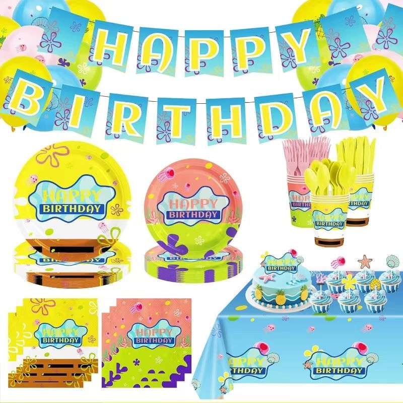 V otroških izdelkih za zabave je nabor namiznih izdelkov SpongeBob zabavna in uporabna izbira. Kot glavni dizajn ima znane like, kot sta SpongeBob in Patrick. Set ima krožnike, papirnate skodelice, prtičke in pripomočke. Plošče prikazujejo SpongeBob z velikim nasmehom in Patricka s smešnim obrazom. Zasnova dodaja meduze, morske alge in školjke, da prinesejo morski slog. Barve so svetle in bogate s plastmi. Papirnate skodelice in prtički sledijo isti temi. Celotna miza je videti polna oceanske zabave. Tamica uporablja varne in eko materiale. Ohranja simpatičen slog in je tudi uporaben. Prilega se rojstnodnevnim zabavam, tematskim dogodkom ali družinskim obrokom. Na kompletu je srečen "bikini na dnu" za otroke in staršem omogoča enostavno in kakovostno zabavo.