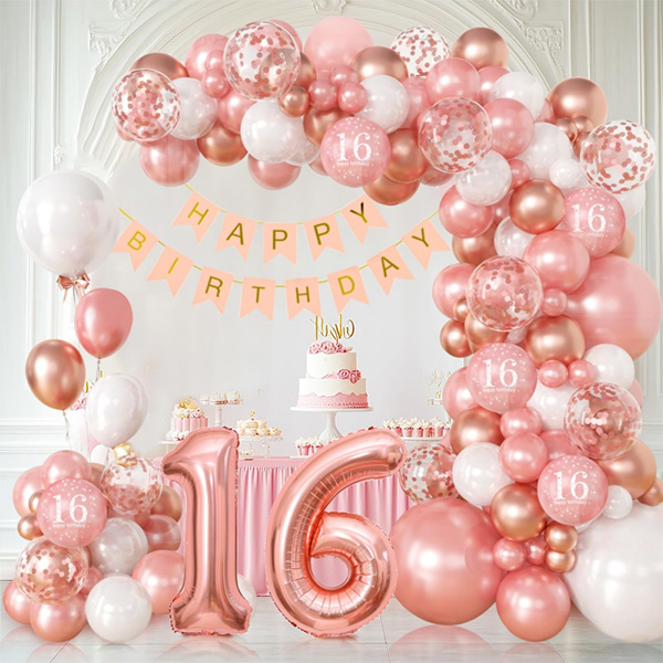 Sweet 16 balloon arch ta paket vključuje balone iz lateksa, balone iz folije, pasice za rojstni dan, lepilne lise, trakove itd. Če imate posebne potrebe, lahko v paketu glede na vaše zahteve prilagodimo tudi velikost balona, količino, barvo itd.s.