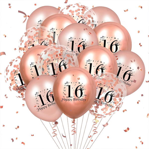 Balon iz lateksa s potiskom za 16. rojstni dan:Ta balon iz lateksa, potiskan za 16. rojstni dan, ki ga izdeluje naša tovarna, je zelo primeren za zabave ob 16. rojstnem dnevu in priložnosti za praznovanje 16. obletnice. Na izbiro imamo različne barve. Prikazujemo rožnato zlato, črno zlato, vijolično zlato, modro in črno. Po vaših željah lahko prilagodimo tudi 16 potiskanih balonov. So odlična ozadja za fotografiranje in lahko tem prizorom dodajo veselje in aktivno vzdušje. Ta natisnjen balon je mogoče napolniti z zrakom, helijem ali celo vodo in se ga ne da zlahka poškodovati ali razbarvati. Je odlična dekoracija za vse vrste zabav za 16. rojstni dan ali družinska srečanja. Za še več zabave uporabite ta balon iz lateksa z drugimi okraski za zabave.