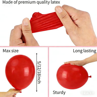 Ta komplet balonov je sestavljen predvsem izbaloni iz lateksain večbalon iz folije. Baloni iz lateksa so rdeče, roza, bele barve. Izdelane so iz 100% naravnega lateksa, ki je popolnoma okolju prijazen in neškodljiv za človeško telo. In njihova velikost je tudi različna. Velikosti balonov iz lateksa so od 5 palcev do 12 palcev, da nastavite čudovit sloj. Razporeditev v komplet je zelo enostavna, zraven pripravimo še lepilo za pike in verižico za balone. Torej, medtem ko ga urejate, lahko to storite s prilagodljivostjo.