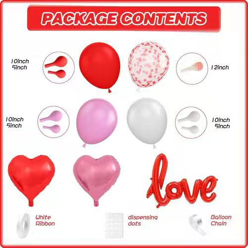 Če želite kupiti valentinovo balonski lok komplet po znižani ceni. Prosimo, pošljite povpraševanje s seznamom naročil na naš e-mail ali WhatsApp. Za vas smo pripravili: