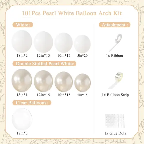 ja bel poročni balonski lok je opremljen s podrobnim navodilom za sestavljanje in orodjem za balonsko verigo. Začetniki lahko preprosto dokončajo dekoracijo brez strokovne pomoči in ustvarijo atmosferski videz balona v 1-2 urah.